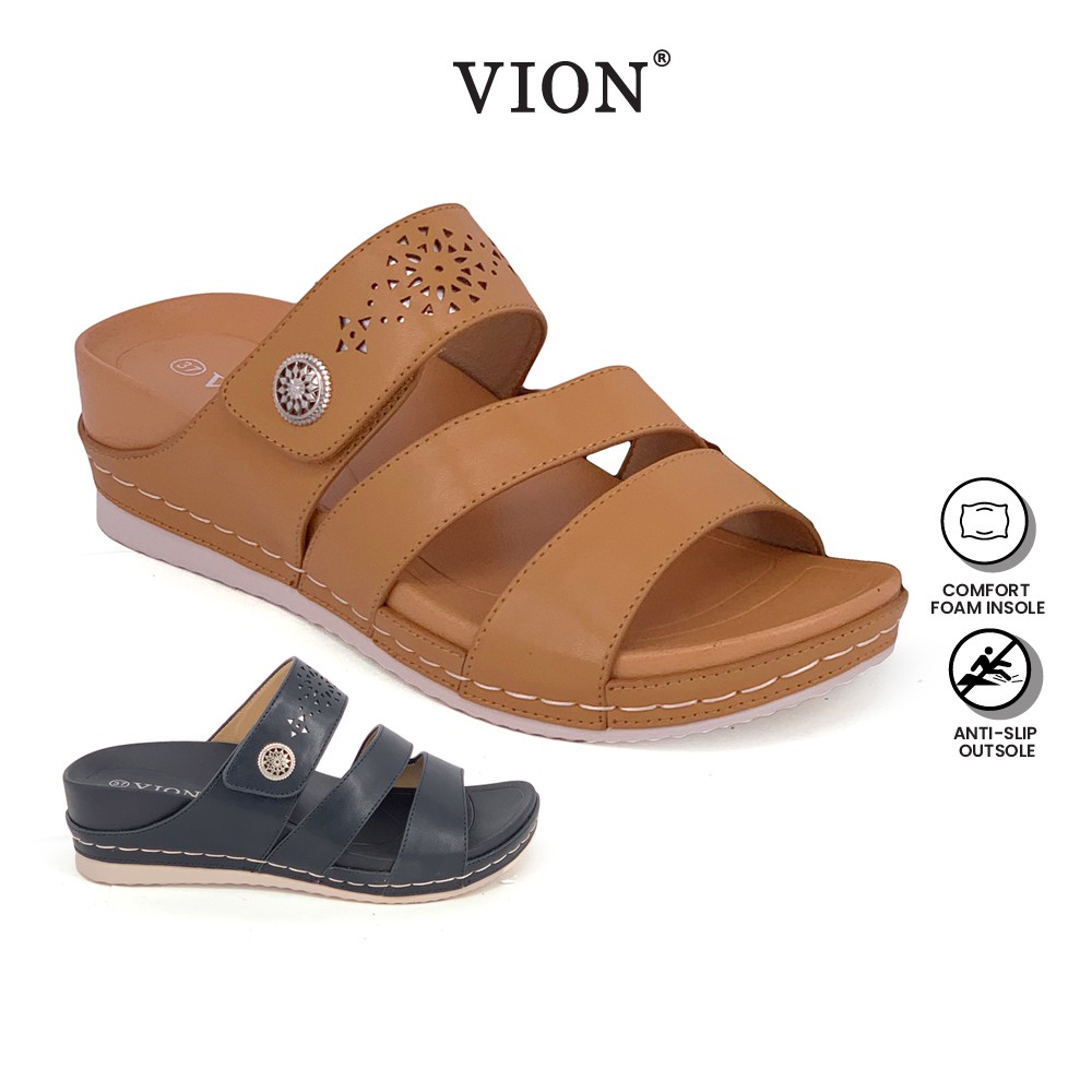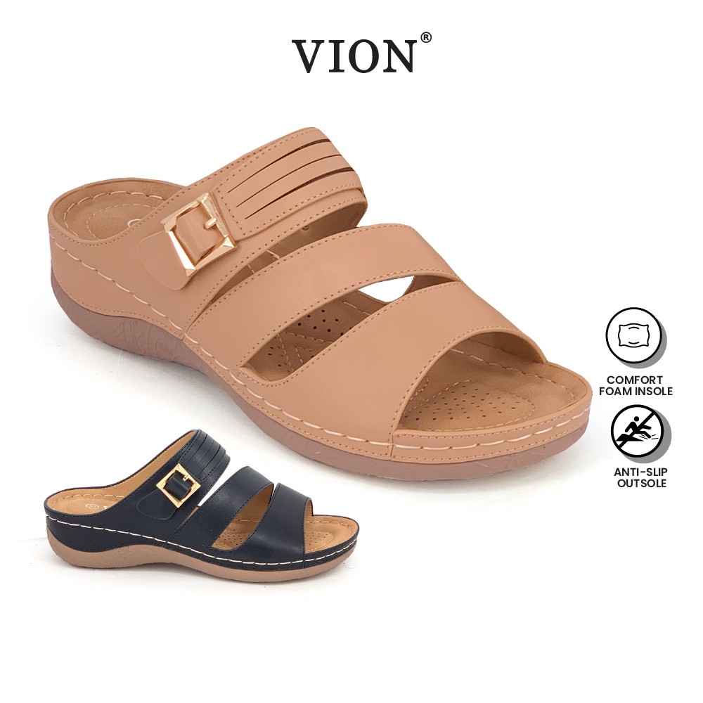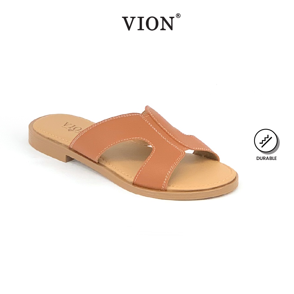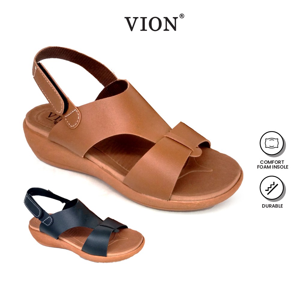 VION Women Sandals PU Leather Almond | Black SDL61AD1 Kasut Perempuan/Sandal Wanita/Kasut Wanita