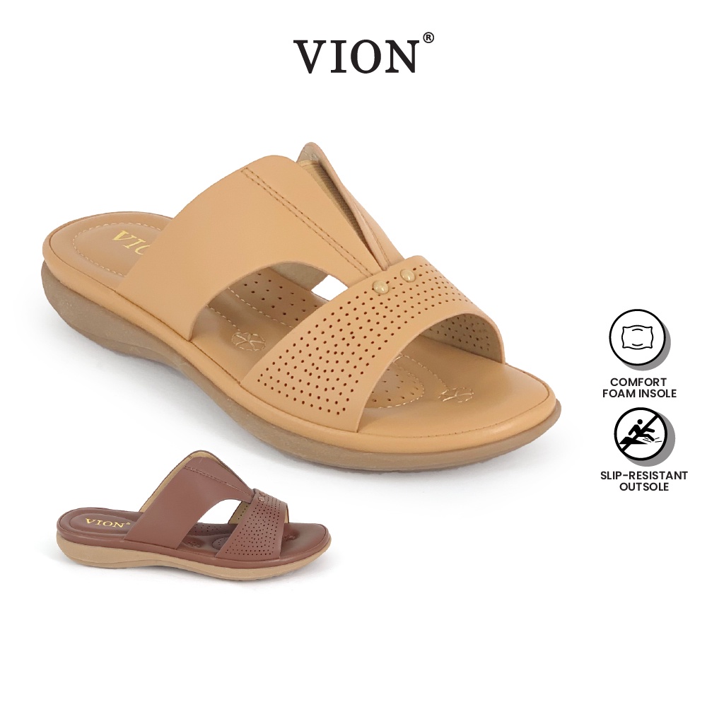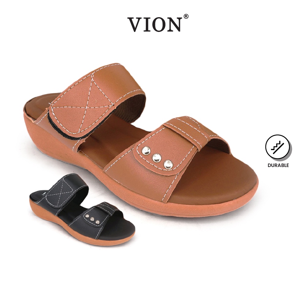 VION Women Sandals SLL61AD3 PU Leather Slipper Wanita/Sandal Perempuan/Sandal/女鞋/女凉鞋