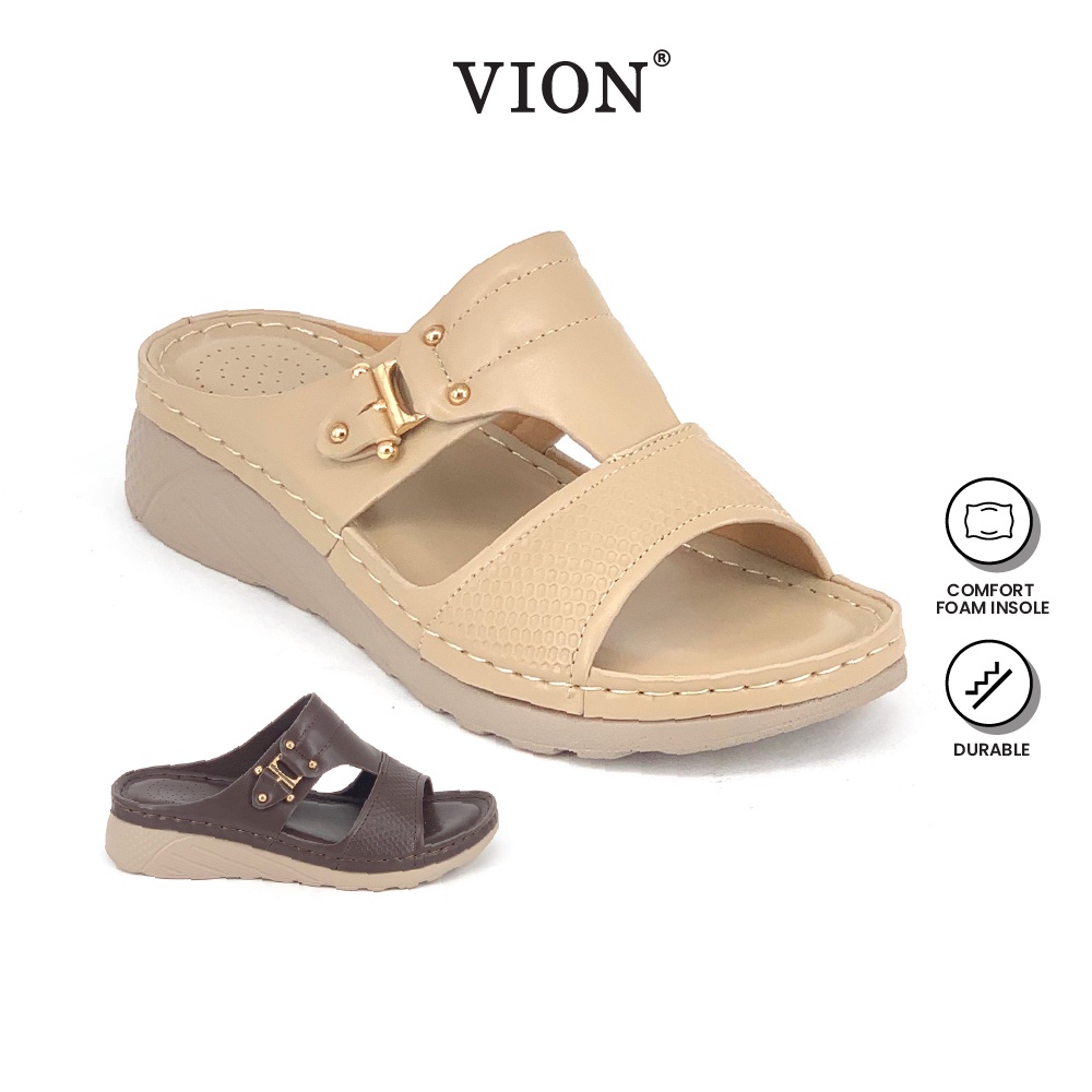 VION Anti Slip Comfort PU Leather SLA659R1 VION Women Wedges/Kasut Perempuan/Sandal Perempuan/Kasut Wanita