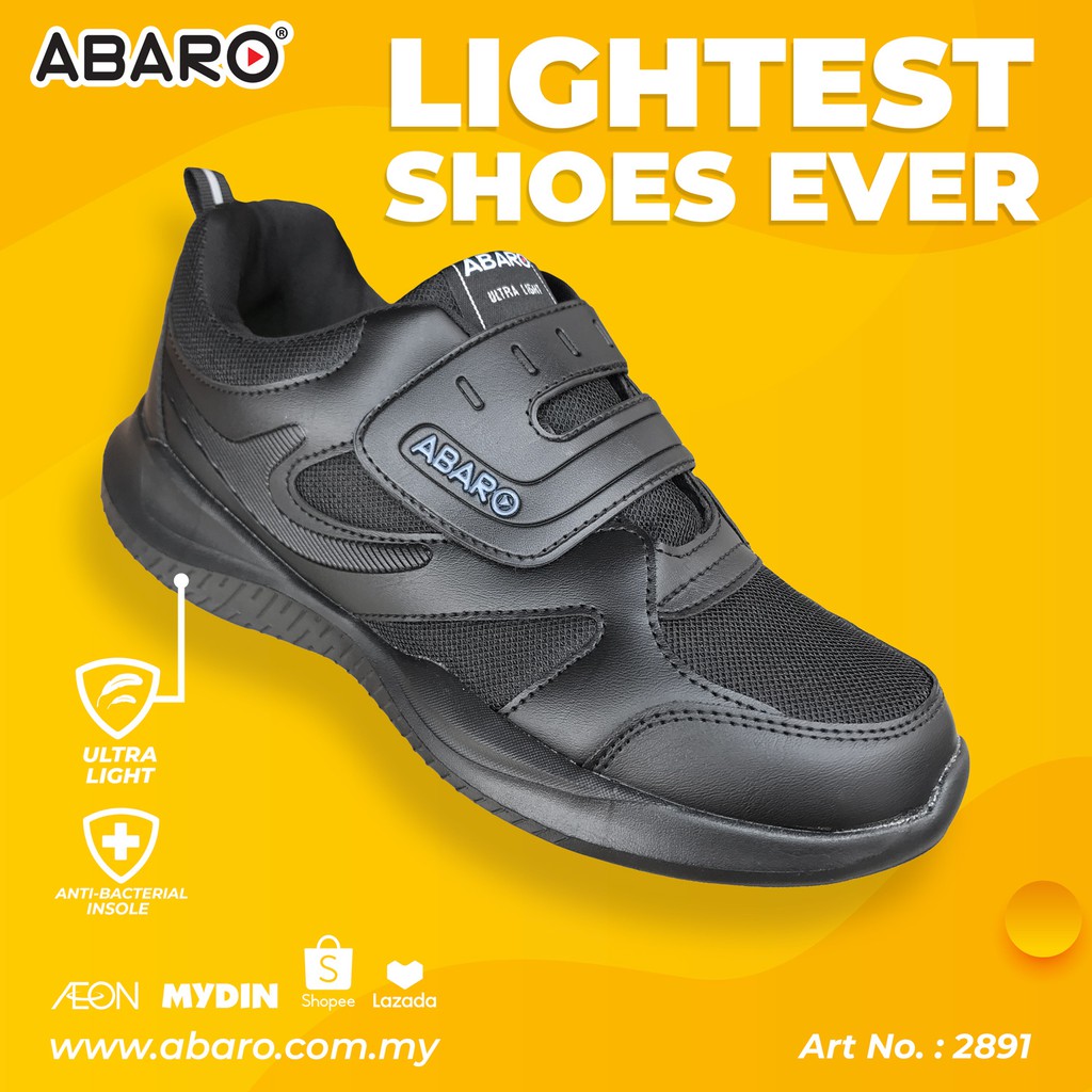 ABARO Unisex Ultralight Sneaker-2891 Black School Shoes/Breathable Mesh/Super Comfy/Sport/Kasut Sekolah Hitam/校鞋/学生鞋/黑鞋