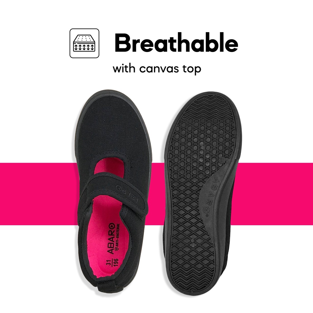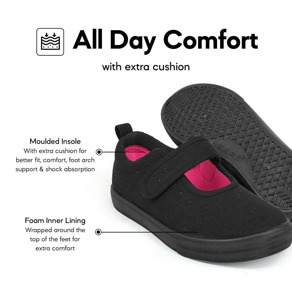 ABARO Slip Resistant/Anti Bacterial-2622 Girls Canvas Shoes Velcro/School Shoes/Kasut Sekolah Hitam/Kasut Sekolah/校鞋/学生鞋