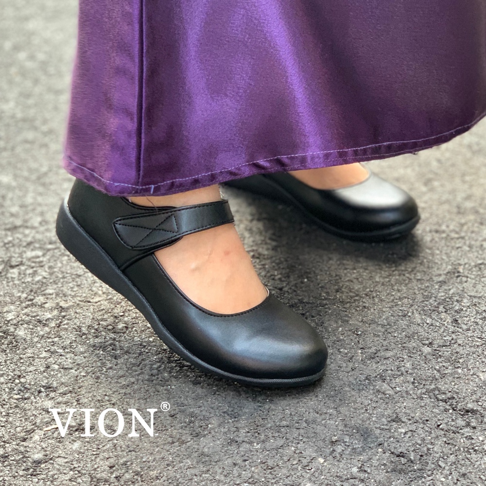 Slip-on Mary Jane design with velcro sling β(Rekaan kasut sarung Mary Jane bersama tali lekat)